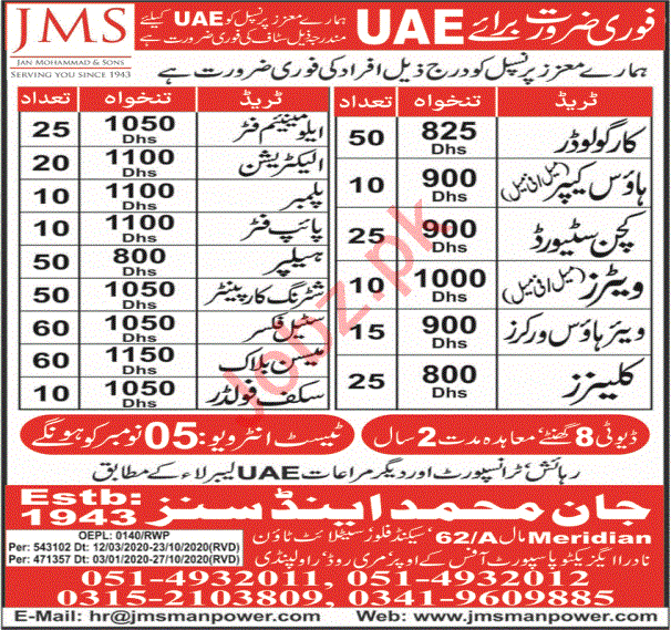 Vacancies in Jan Muhammad & Sons Advertisement November 2020