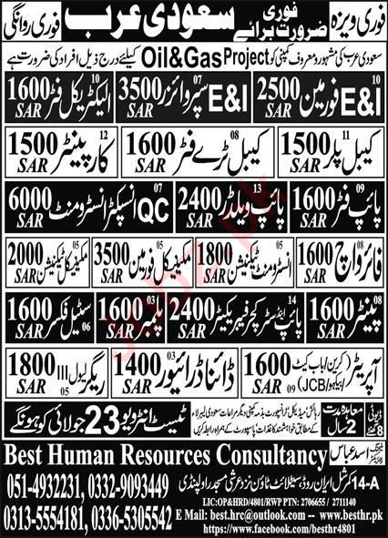 Best Human Resources Consultancy invites applications for job positions advertised in daily Express dated 21 July 2024 for following vacancies in Makkah, makkah Saudi Arabia.