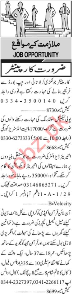 Carpenter & Interior Designer Jobs 2021 in Karachi