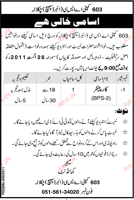 Apply as per details in job advertisement. Login to view further details of how to apply via https://www.jobz.pk online.