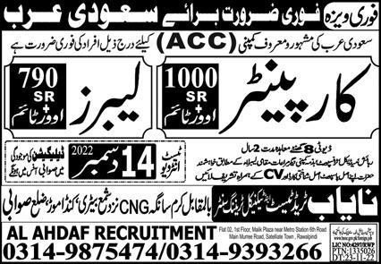 Carpenter & Labor Jobs 2022 in Saudi Arabia