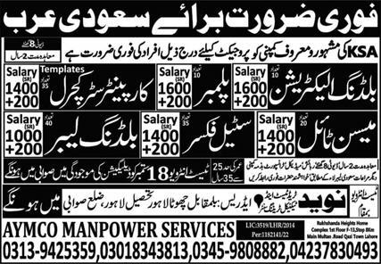 Aymco Man Power Services invites applications for job positions advertised in daily Express dated 17 September 2022 for following vacancies in Madina, makkah Saudi Arabia.