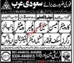 Carpenters, Mason, Steel Fixers, Riggers Job Opportunity