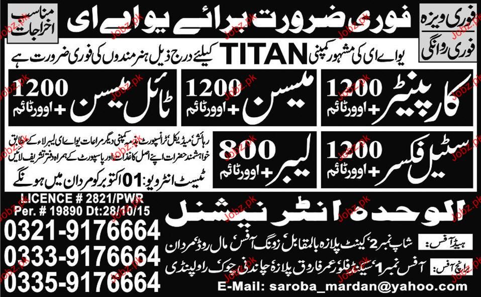 Carpenters, Mason, Tile Mason, Steel Fixers Job Opportunity