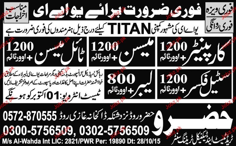 Carpenters, Mason, Tile Mason, Steel Fixers Job Opportunity