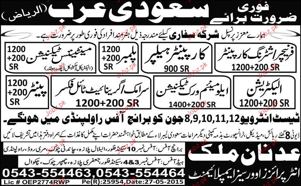 Carpenters, Plumbers, Grainite Tile Fixers Job Opportunity