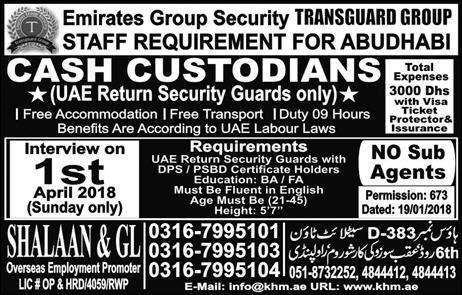 Cash Custodians Job In Emirates Group Security