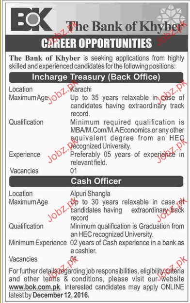 Apply as per details in job advertisement. Login to view further details of how to apply via https://www.jobz.pk online.