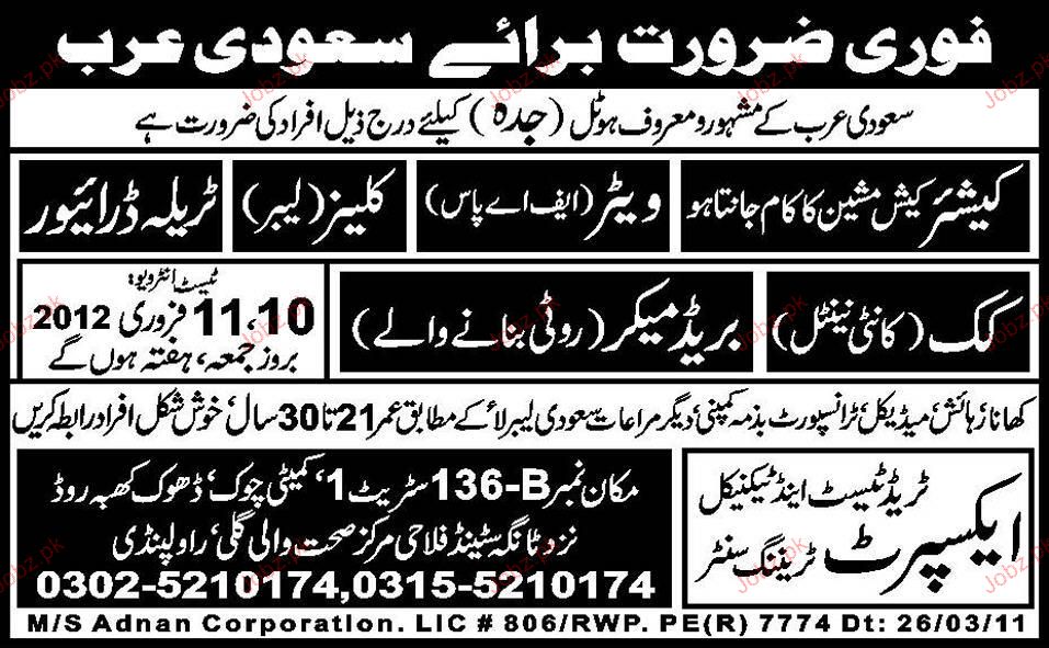 Cashier, Waiters, Cleaners, Tralla Driver Required