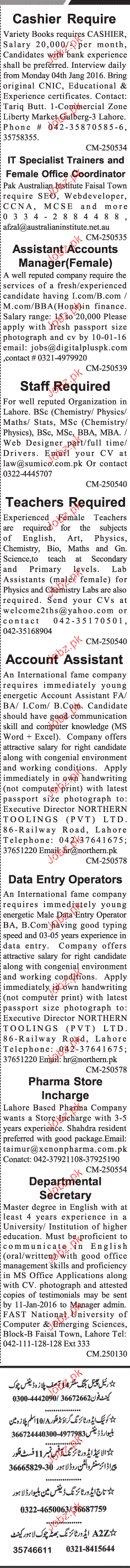 Cashiers, IT Specialists And Assistant Accountant Wanted