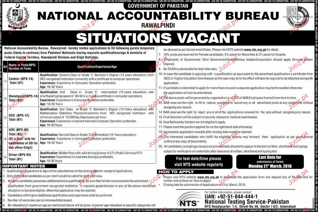 Apply as per details in job advertisement. Login to view further details of how to apply via https://www.jobz.pk online.