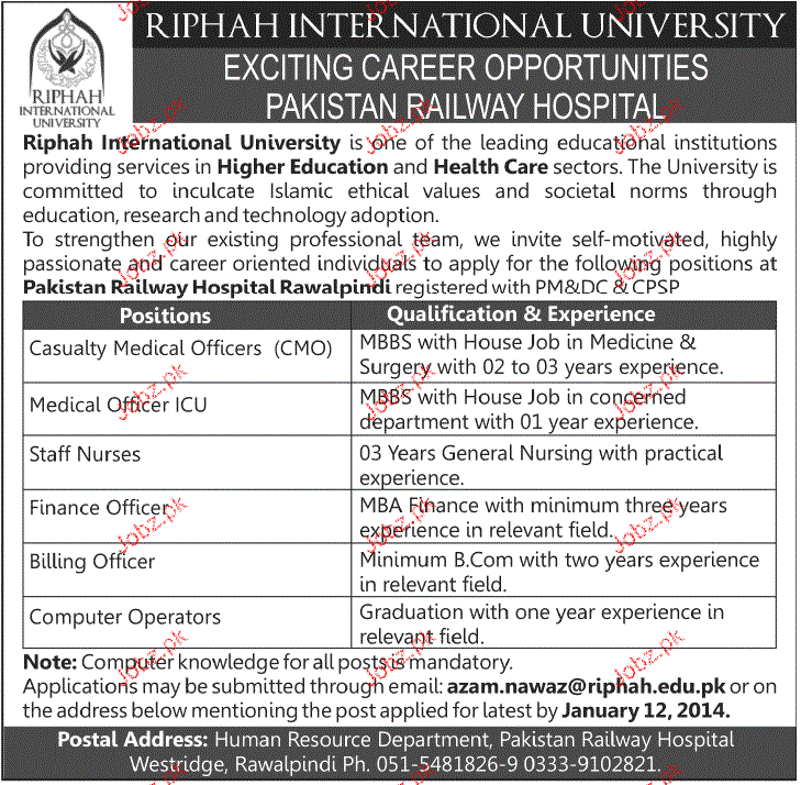 Apply as per details in job advertisement. Login to view further details of how to apply via https://www.jobz.pk online.