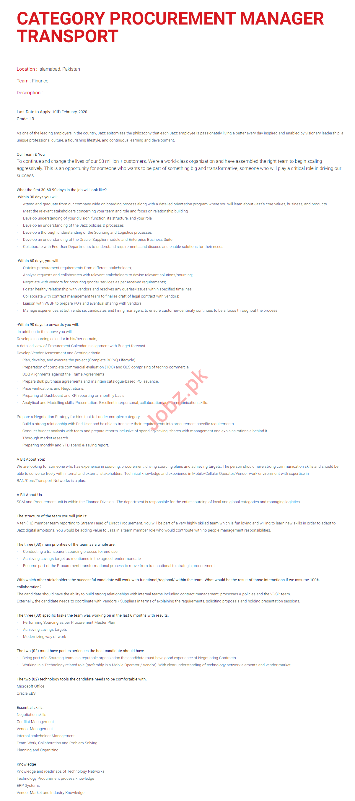 Latest Jazz Telecom Finance Posts Islamabad 2025