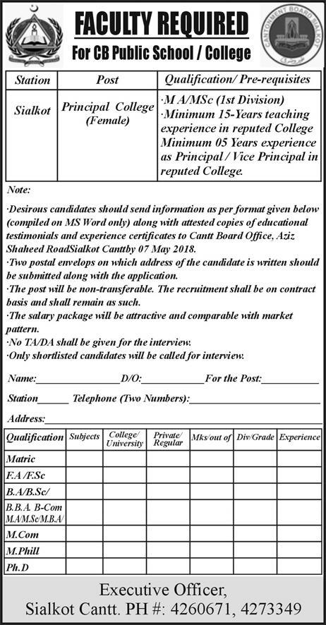 Latest Cantt Public School and Girls College Management Posts Sialkot 2025