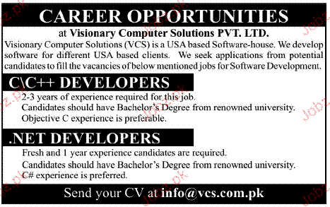 CC ++ Developer And Net Developers Job Opportunity