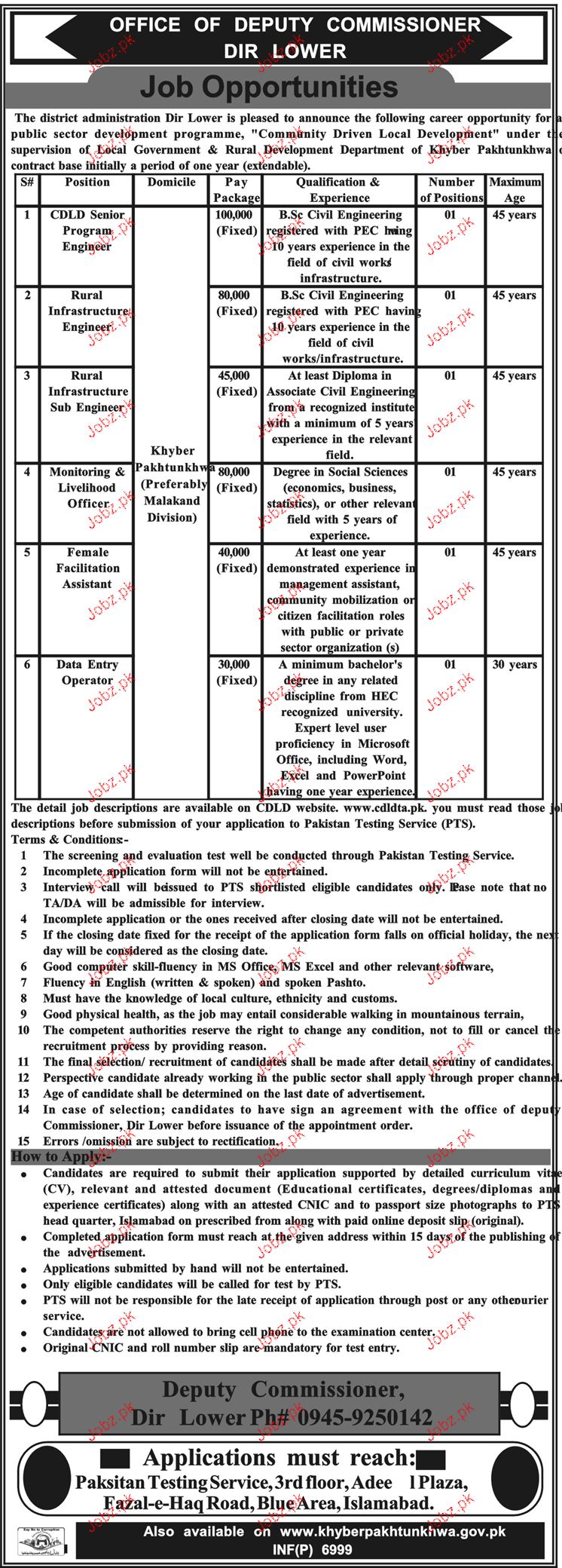 Latest Deputy Commissioner District Office Engineering Posts Lower Dir 2025