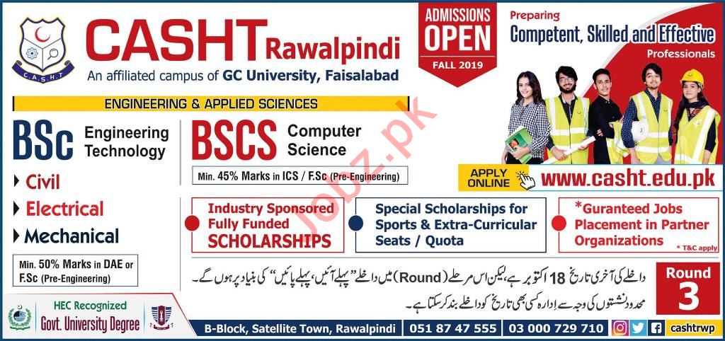 Center of Advanced Studies in Health & Technology CASHT is offering admissions in B.Sc Engineering Technology in Civil, Electrical, Mechanical, BS Computer Science in Rawalpindi. Read newspaper ad for exact details.
