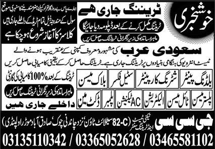 GCC Techni Test & Training Center Technical Training Course of Building Painter, Shuttering Carpenter, Steel Fixer, Block Mason, Plaster Mason, Tile Mason, Electrician, AC Technician, Plumber, Ductman, admissions 2023 has been announced. GCC Techni Test & Training Center Rawalpindi Punjab Pakistan welcomes students to apply for admissions in academic year 2023 in Technical Course. Students for admissions in Diploma and Course can apply for online or campus classes as per Private institute criteria till admission closing date September 25, 2023. Read newspaper ad for exact details.