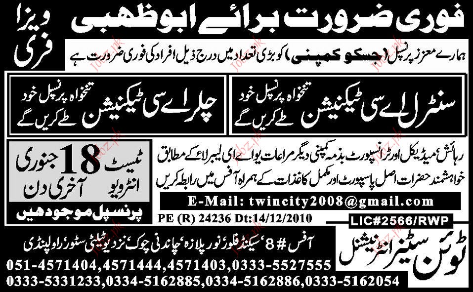 Central A/C Technician and Chiller A/C Technician Vacancy