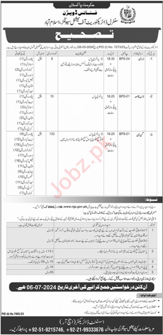 Vacancies in Central Directorate of National Saving Advertisement June 2024