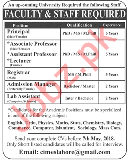 Latest Central Institute of Management & Sciences CIMS Education Posts Lahore 2025