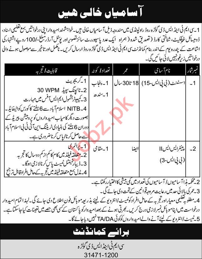 How to Apply on CMT and SD Golra Rawalpindi Job Advertisement