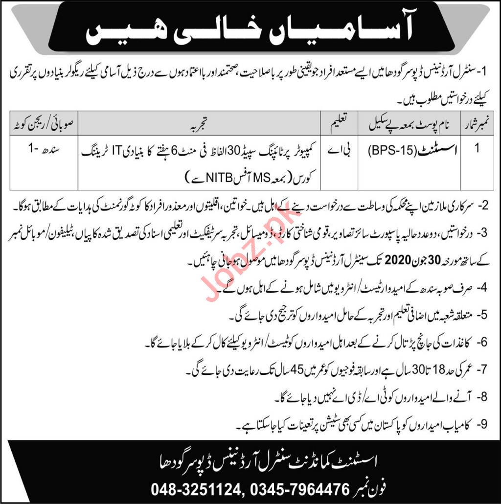 Vacancies in Central Ordnance Depo Advertisement June 2020