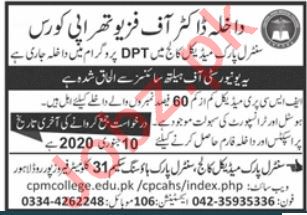 Central Park Medical College affiliated with University of Health Sciences has announced admissions for Doctor of Physiotherapy DPT Course in Lahore Punjab Pakistan. Read newspaper ad for exact details.