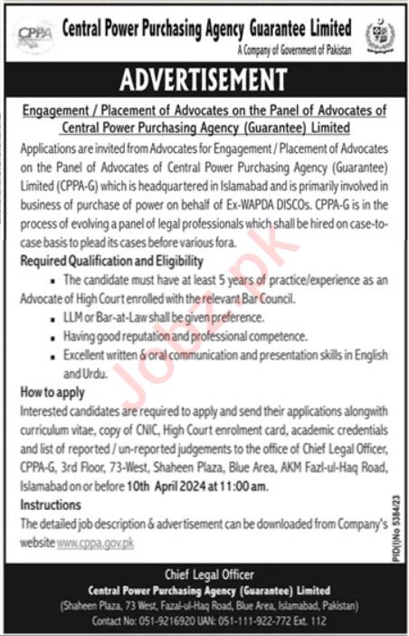 Latest Central Power Generation Company Ltd Legal Posts Islamabad 2025
