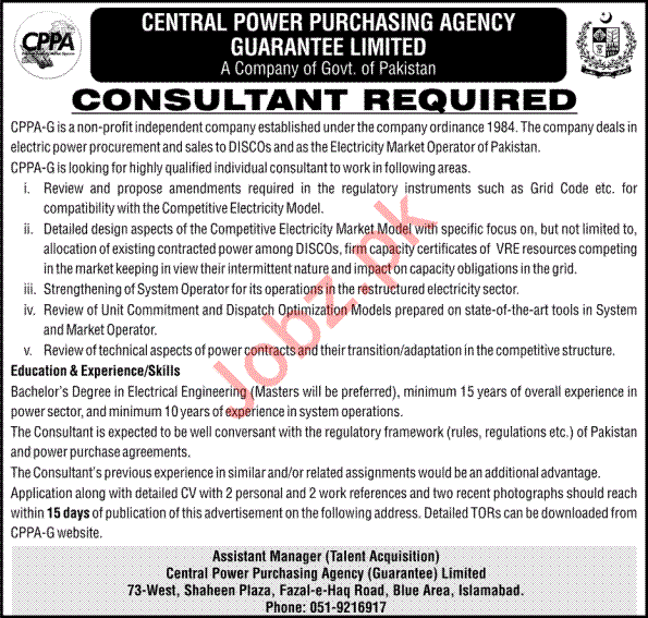 Latest Central Power Purchasing Agency Guarantee Limited CPPAG Consultant Posts Islamabad 2025