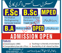 Central Science Degree College Admission in Fsc, BSc, MPED and BA in Peshawar. Read newspaper ad for exact details.