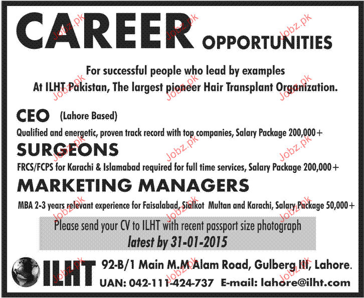 Apply as per details in job advertisement. Login to view further details of how to apply via https://www.jobz.pk online.
