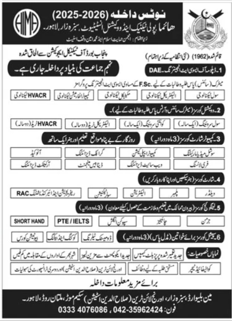 Technical Education & Vocational Training Authority TEVTA admissions 2025 for Certified Courses has been announced. Eligible students can apply for academic admissions 2025 in Technical Education & Vocational Training Authority TEVTA Lahore Punjab Pakistan for Technical College. Students who want to enroll for academic session 2025 in qualification and admission criteria for Government institute can apply till last date. Read newspaper ad for exact details.
