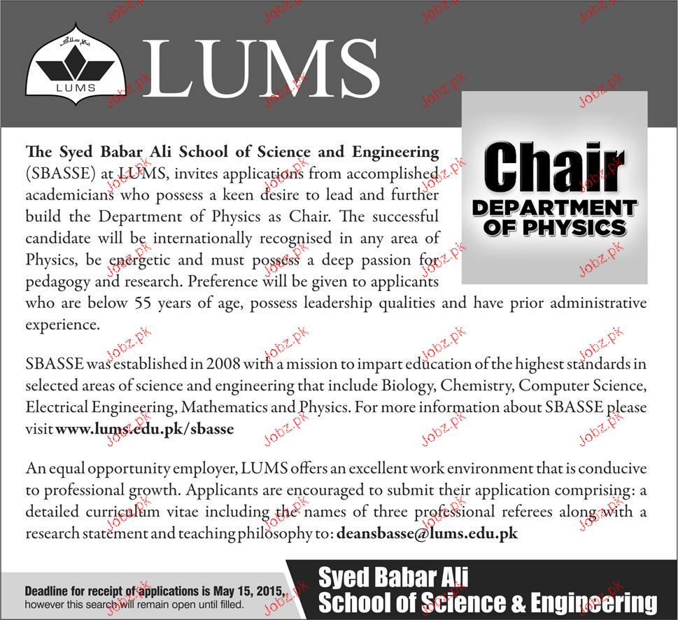 Chair Department Of Physics Job In LUMS