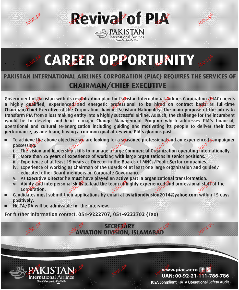 How to Apply on Pakistan International Airlines PIA Job Advertisement