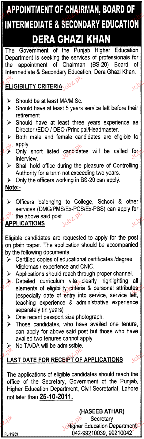 Latest Board of Intermediate and Secondary Education BISE Other Posts Dera Ghazi Khan 2025