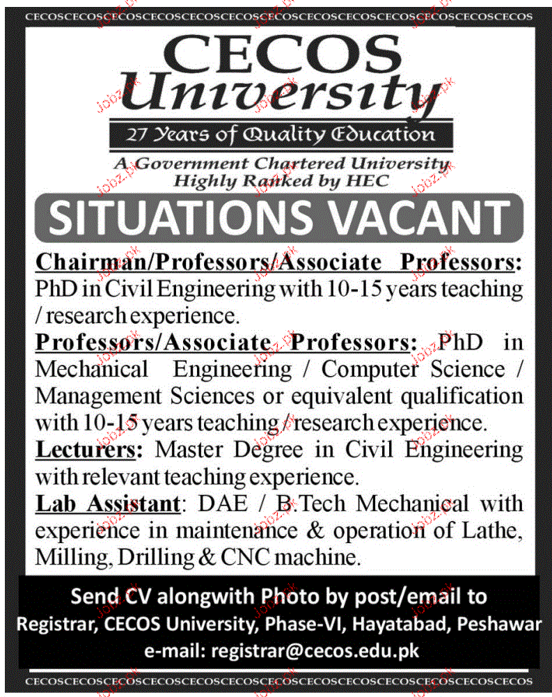 Apply as per details in job advertisement. Login to view further details of how to apply via https://www.jobz.pk online.