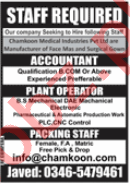 Latest Chamkoon Medical industries Industrial Posts Rawalpindi 2025