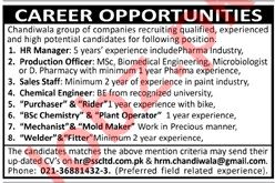 Vacancies in Chandiwala Group of Companies Advertisement September 2018