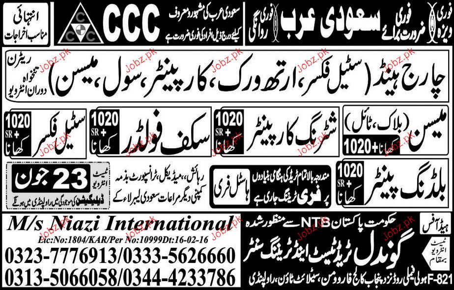 Charge Hand, Mason, Shuttering Carpenters Job Opportunity