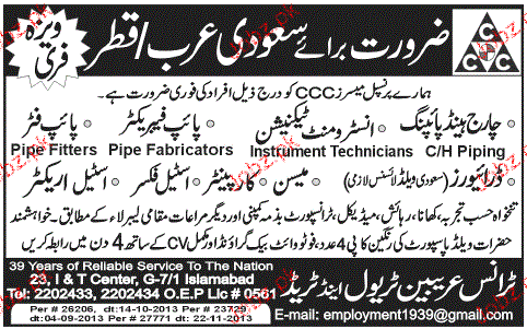 Charge Hand Piping, Instrument Technicians Job Opportunity