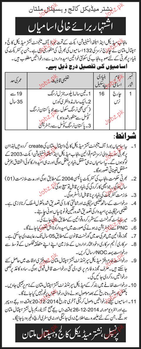 Charge Nurses Job In Nishtar Medical College And Hospital