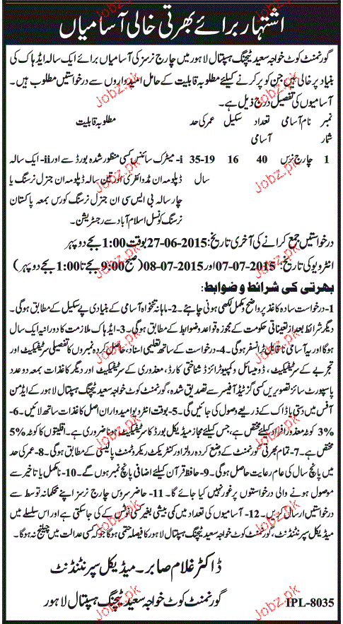 Latest Government Medical Posts Lahore 2025