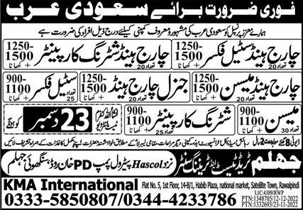 Jhelum Trade Test & Training Center is looking for candidates for following posts as per job advertisement published in daily Express Newspaper of December 21, 2022 for location Madina, makkah Saudi Arabia: