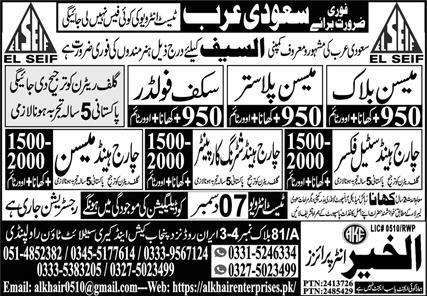 Al Khair Enterprises invites applications for job positions advertised in daily Express dated 6 December 2025 for following vacancies in Riyadh, dammam Saudi Arabia.
