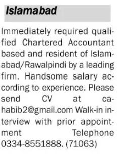 Chartered Accountant & Accountant Jobs 2022 In Islamabad
