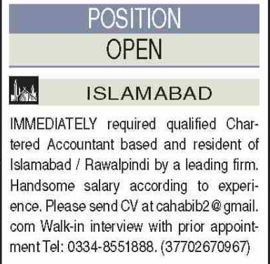 Chartered Accountant & Accountant Jobs 2022 In Islamabad