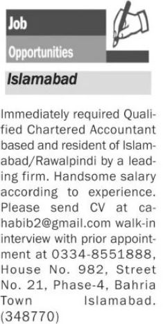 Chartered Accountant & Accountant Jobs 2022 In Islamabad