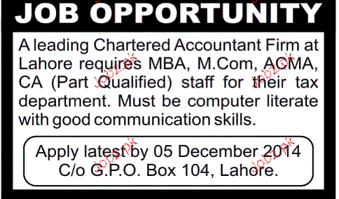 Apply as per details in job advertisement. Login to view further details of how to apply via https://www.jobz.pk online.