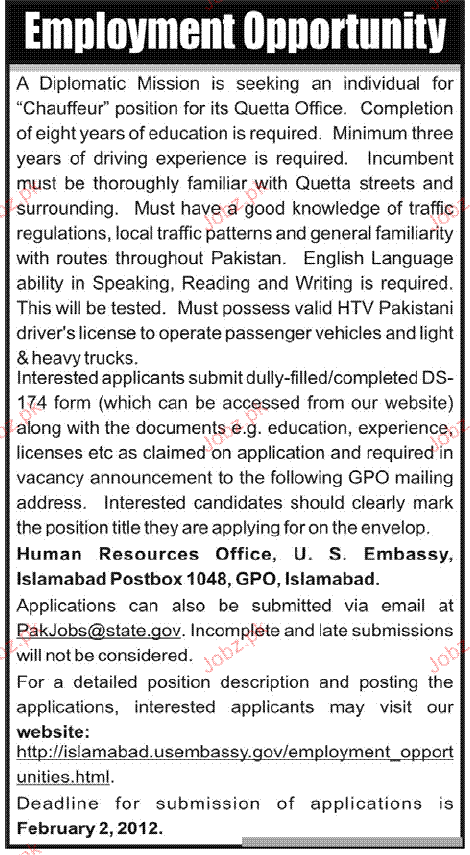 Apply as per details in job advertisement. Login to view further details of how to apply via https://www.jobz.pk online.